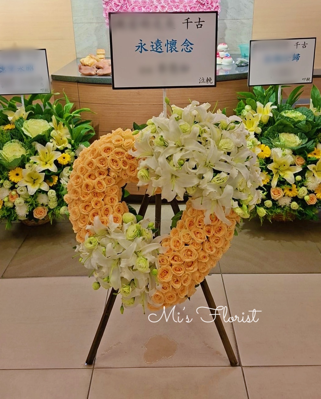 此花籃附送A3敬輓詞插置在花籃上方
