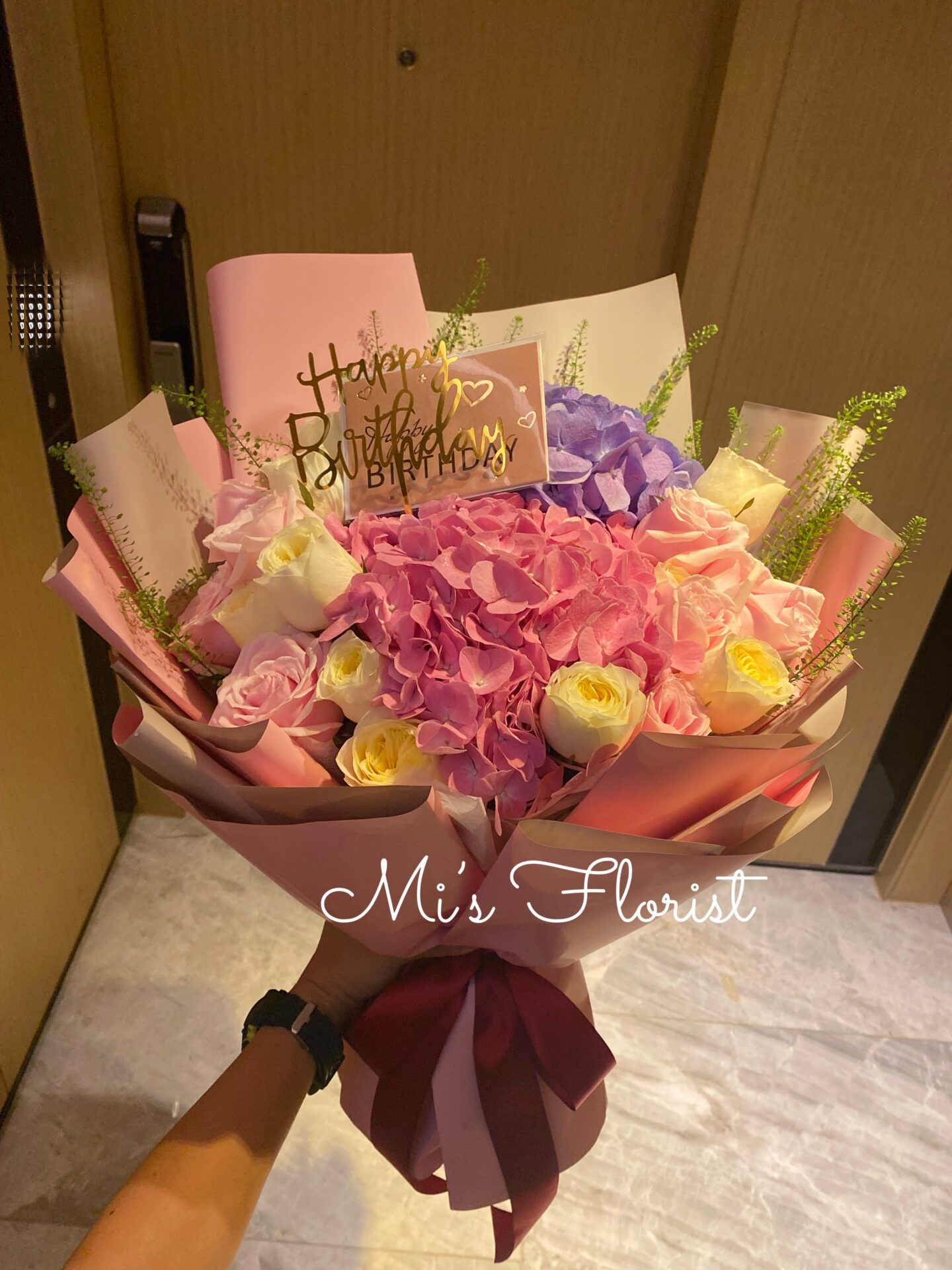 鮮花花束生日花束 / 週年紀念花束 – 繡球花 & 玫瑰花