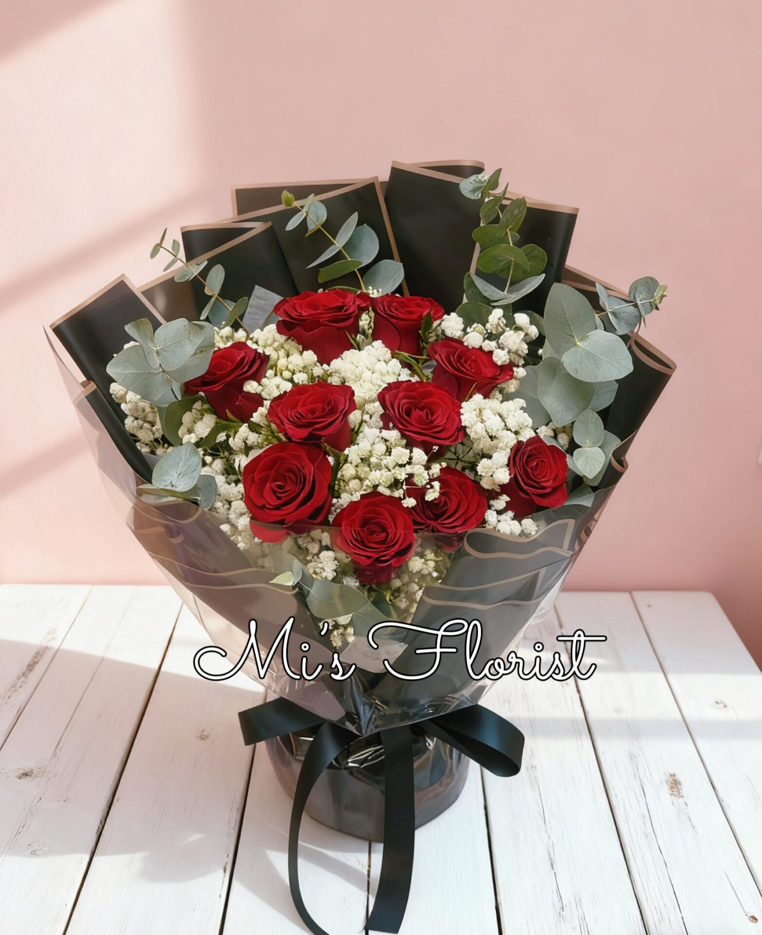 鮮花花束生日 / 週年紀念日 – 紅玫瑰花束(9-10枝玫瑰花)